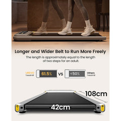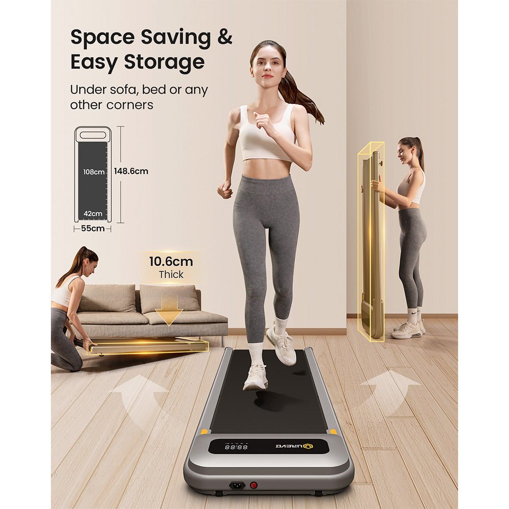 UREVO zemgalda trase ir tikai 11 cm bieza un sver 24,1 kg. Ar diviem priekšējiem mobilajiem riteņiem to var viegli pārvietot ikviens. Ērtības labad skrejceļš nav jāmontē, un to var izmantot uzreiz pēc izpakošanas.